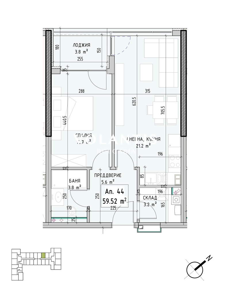 2558   2-стаен апартамент   Юи   7   А 80   69.62 кв. м.   59.52 кв. м.   Резервиран