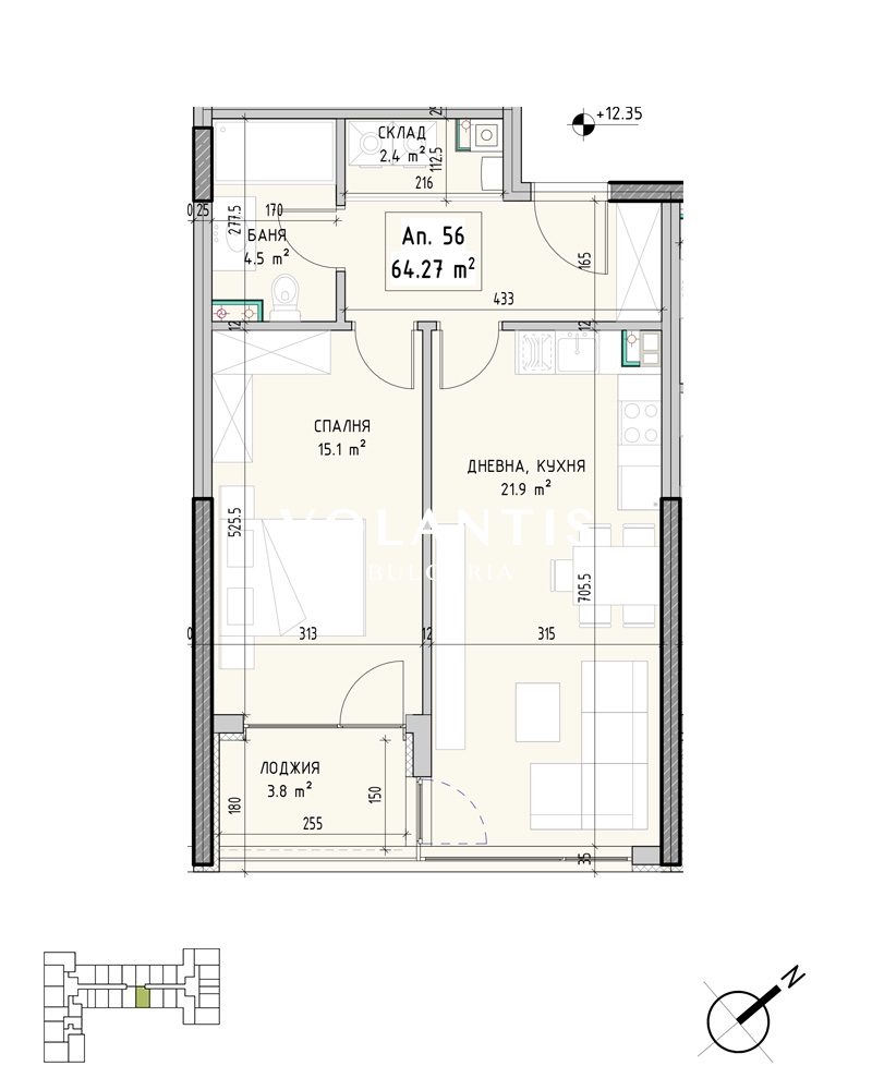 2535   2-стаен апартамент   Юи   4   А 41   70.25 кв. м.   59.52 кв. м.   Резервиран