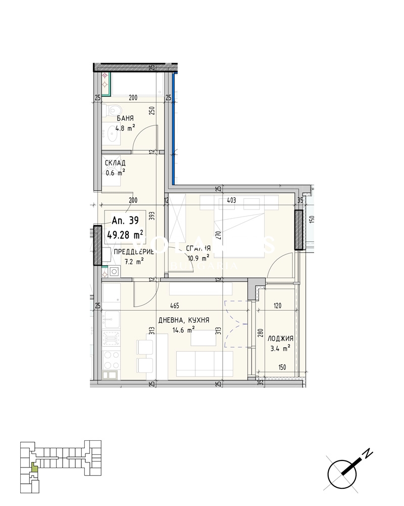 2605   2-стаен апартамент   Юи   4   Б 50   70.25 кв. м.   59.52 кв. м.   Резервиран