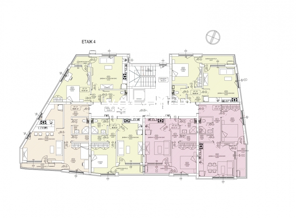 1107   1-стаен апартамент   Юг   5   27   71.00 кв. м.   60.40 кв. м.   Резервиран