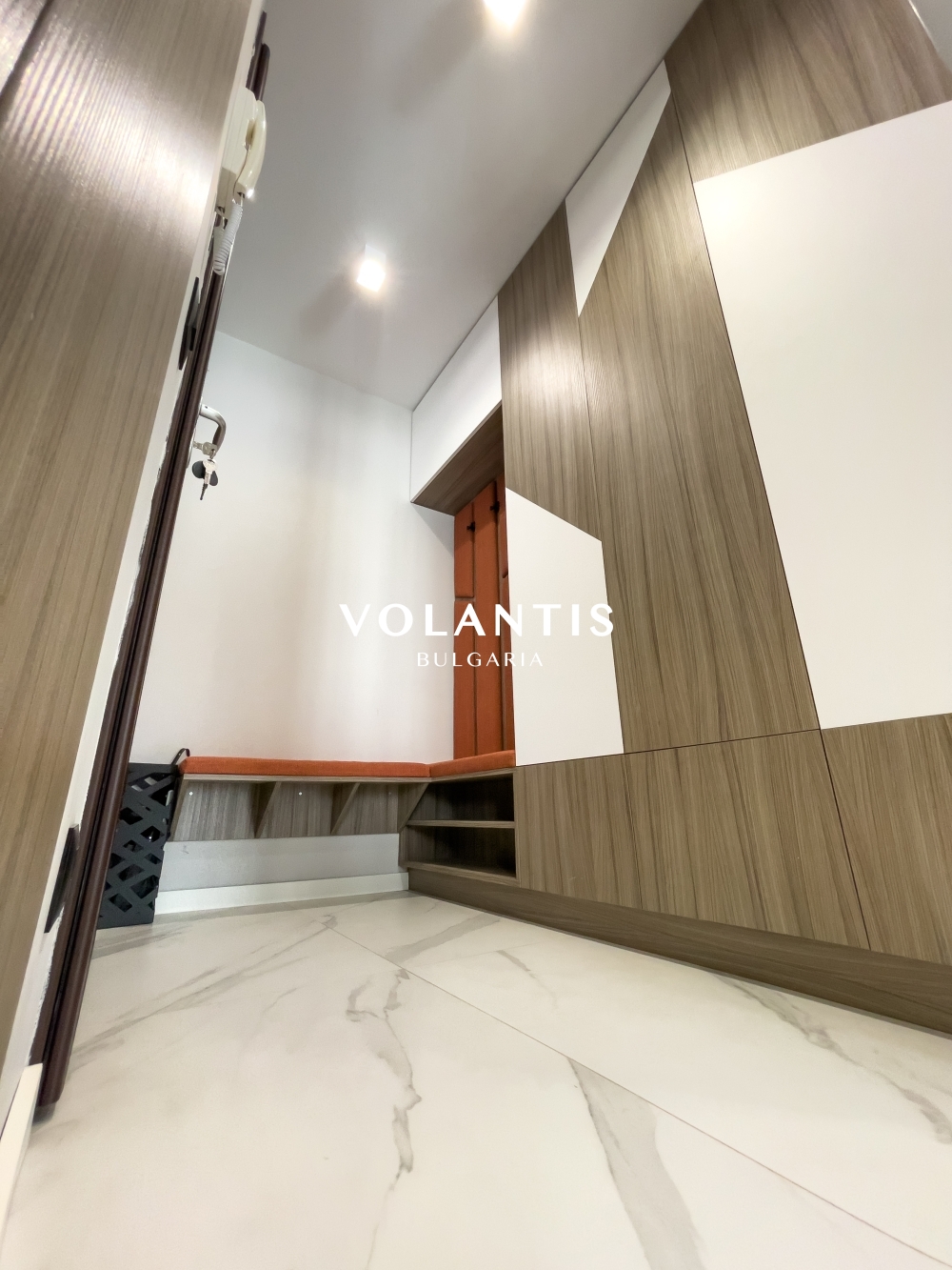 Вашият нов дом разполага с всичко необходимо и в същото време няма нищо излишно! За обзавеждането сме ползвали услугите на интериорен дизайнер, а за мебелите се погрижиха професионалистите от ФОРЕСТА. Осигурено е достатъчно пространство за всичките Ви вещи, като всички мебели са с пуш механизми, гарантиращи перфектна изчистена визия. Холът е ъглов, с изложение юг/изток, което Ви гарантира огромно количество светлина! Настилките са от естествен трислоен паркет и висококачествен гранитогрес (нивата на настилките са изравнени и няма лайсни). Имотът разполага с две санитарни помещения, като в едното е обособена ниша за пералня и сушилня от най-висок клас. Бъдещият Ви дом е без преход, а спалните са отделени в двата края на имота, за да се гарантира спокойствие между поколенията! Едната спалня е стилно обзаведена, а другата се ползва като домашен офис в момента.