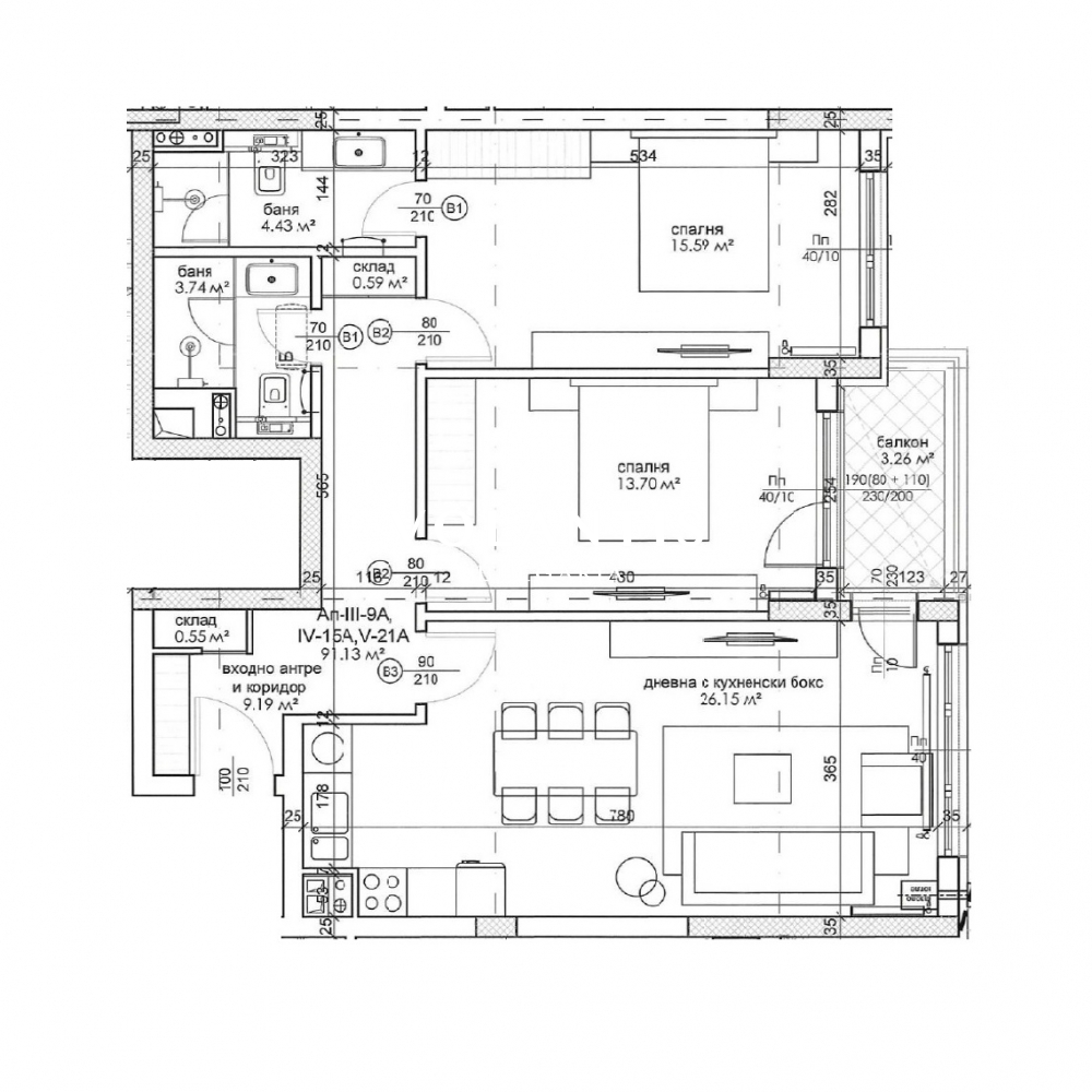 1845   3-стаен апартамент   И   2   3   110.74 кв. м.   93.65 кв. м.   Свободен   210 406 EUR