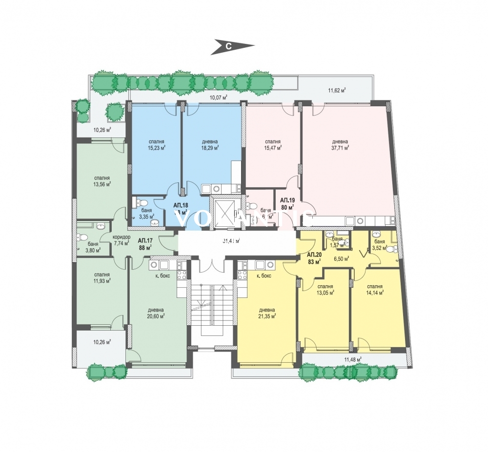 685   2-стаен апартамент   З   6   19   97.31 кв. м.   81.68 кв. м.   Свободен   214 082 EUR